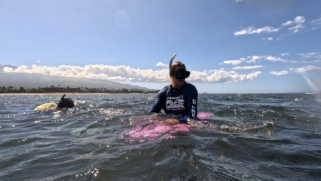 Participants boarded a vessel provided by Trilogy Expeditions and traveled to key reef sites along Maui’s leeward coast. At Kalepolepo in North Kīhei, presenters highlighted the impacts of sediment runoff and poor water quality on coral reefs that are approaching a tipping point. Attendees then visited Keālia Reef, where cleaner waters have enabled corals to thrive, illustrating the contrast between struggling and resilient reef systems. At both sites, participants jumped into the water to see the difference for themselves.
