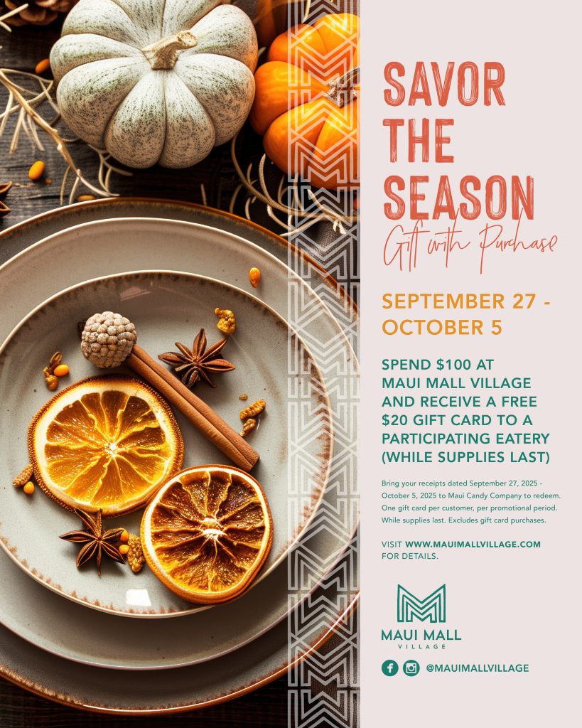 Shoppers can enjoy fall-themed products, menu specials and seasonal finds from mall tenants and local vendors through the Maui Merchant Showcase.