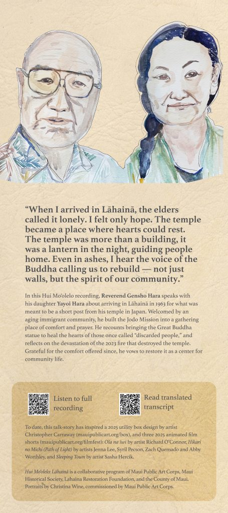 • Reverend Gensho Hara, Lāhainā Jodo Mission & his daughter, Yayoi Hara. PC: Maui Public Art Corps