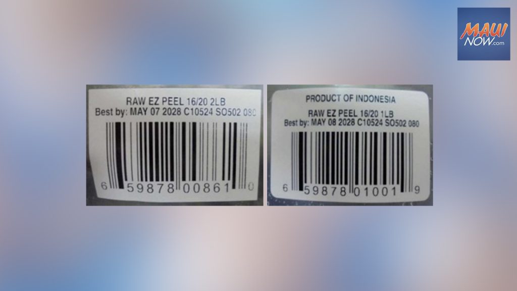 The Hawai‘i Department of Health, Food and Drug Branch is alerting residents to a frozen shrimp recall issued by Sea Port Products Corp., of its Sea Port brand Raw Frozen Easy Peel White Shrimp Jumbo size 16/20, because of possible Cesium-137 contamination.