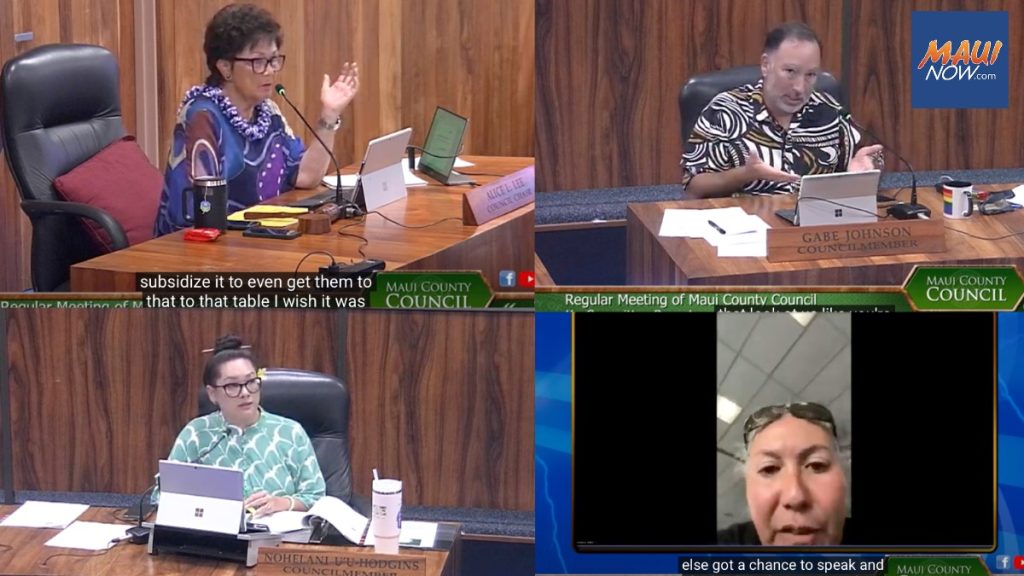 In the initial vote, the four council members voting “aye” were Tasha Kama, Tamara Paltin, Gabe Johnson and Nohelani Uʻu-Hodgins. Voting “nay” were Alice Lee, Yuki Lei Sugimura and Tom Cook. Council Members Keani Rawlins-Fernandez and Shane Sinenci were absent, leaving the nine-member Council with only seven members.