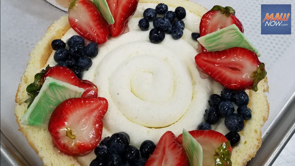 Pastry Chef Instructor Hannah Stanchfield and her baking students are busy preparing cakes, tarts, and pies for the sale which takes place in the Pā‘ina Building on the UHMC Campus.