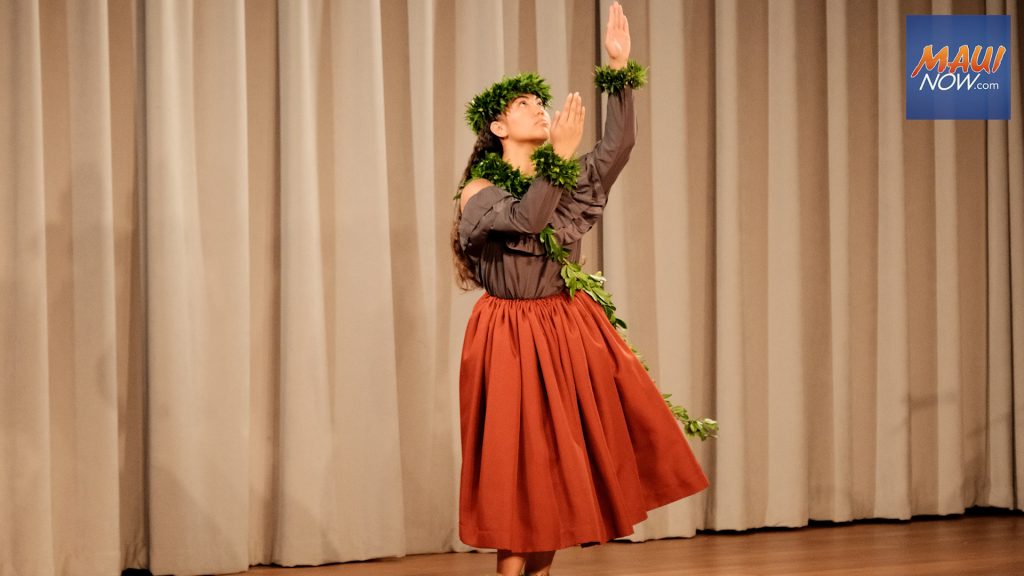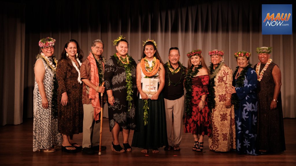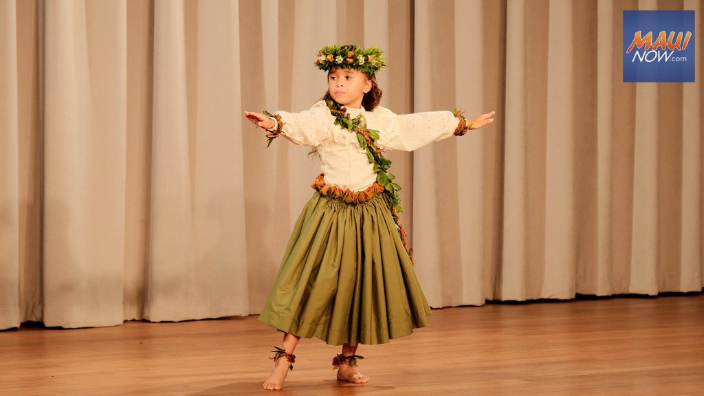 Maui’s Elizabeth Kamaile Kahailihauwelo Kekahuna, representing Hālau Keʻalaokamaile under the guidance of Nā Kumu Hula Kealiʻi Reichel and Henohea Kāne, was announced as the winner of the 33rd annual Hula O Nā Keiki competition at Outrigger Kā’anapali Beach Resort.