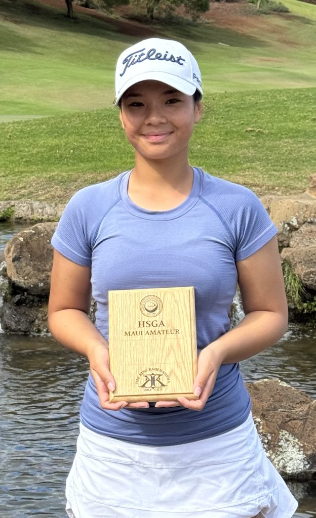 In the Women’s Championship, Wailuku resident Ava Kawahara shot a final round 75 to win by five strokes over fellow Wailuku resident Naiya Hamasaki. Ava is currently a senior at Maui Preparatory Academy.