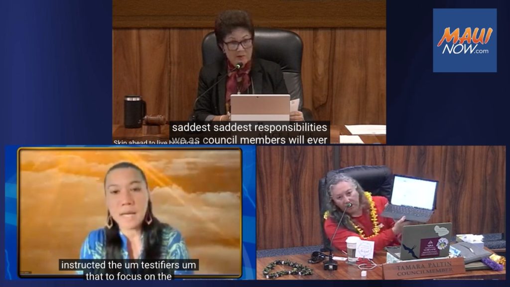The vote settled the agreed-upon process for filling Kama’s vacant seat, but the political undercurrent of the 4-4 Council split broke to the surface in a sharp dispute over a contentious piece of legislation just before the final vote. (To see a video of the meeting, visit the Maui County Council’s YouTube channel here.)