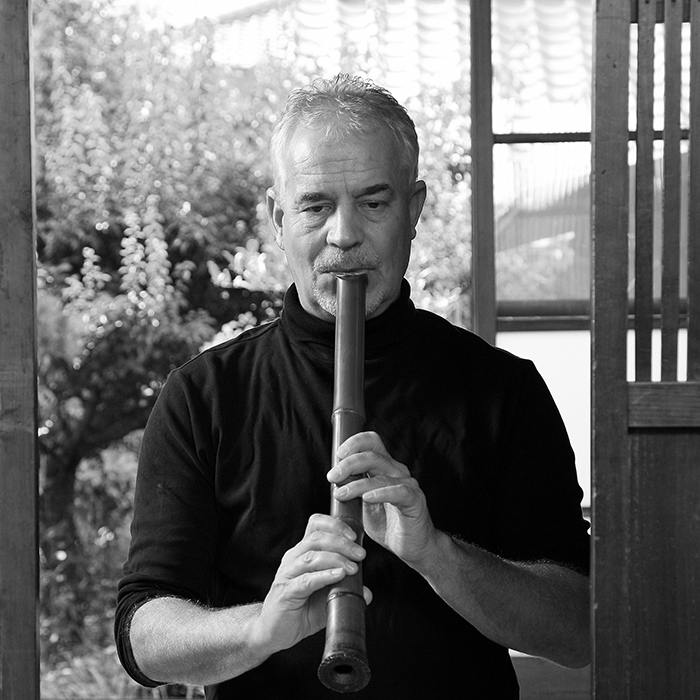 Studying under Living National Treasure Goro Yamaguchi from 1972-1999, Christopher received an MFA in ethnomusicology from Tokyo University of the Arts and was awarded shihan master ranking by Yamaguchi. In his musical activities, he balances traditional shakuhachi music, modern compositions, improvisation, and cross-genre work with musicians, dancers, poets, and visual artists.