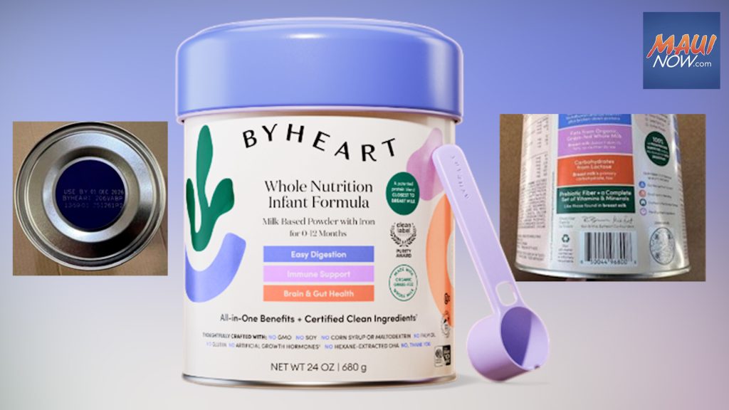 The Hawaiʻi Department of Health, Food and Drug Branch is alerting residents to a recall issued by ByHeart Inc. for select lots of ByHeart Whole Nutrition Infant Formula product, due to potential contamination of Clostridium botulinum.