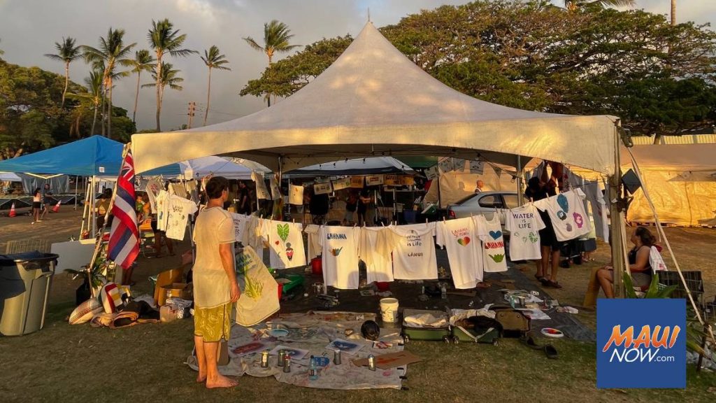 Community Arts tent sponsored by Wisdom Circles serve hundreds of fire affected families of all ages at the Honokōwai Hub shortly after the fires in 2023. (Courtesy: Wisdom Circles Oceania)