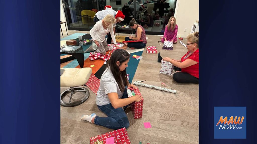 Members of the Rotary Club of Lahaina Sunset participated in wrapping gifts for children in need as part of a previous Secret Angel Project. (Courtesy: Rotary Club of Lahaina Sunset)