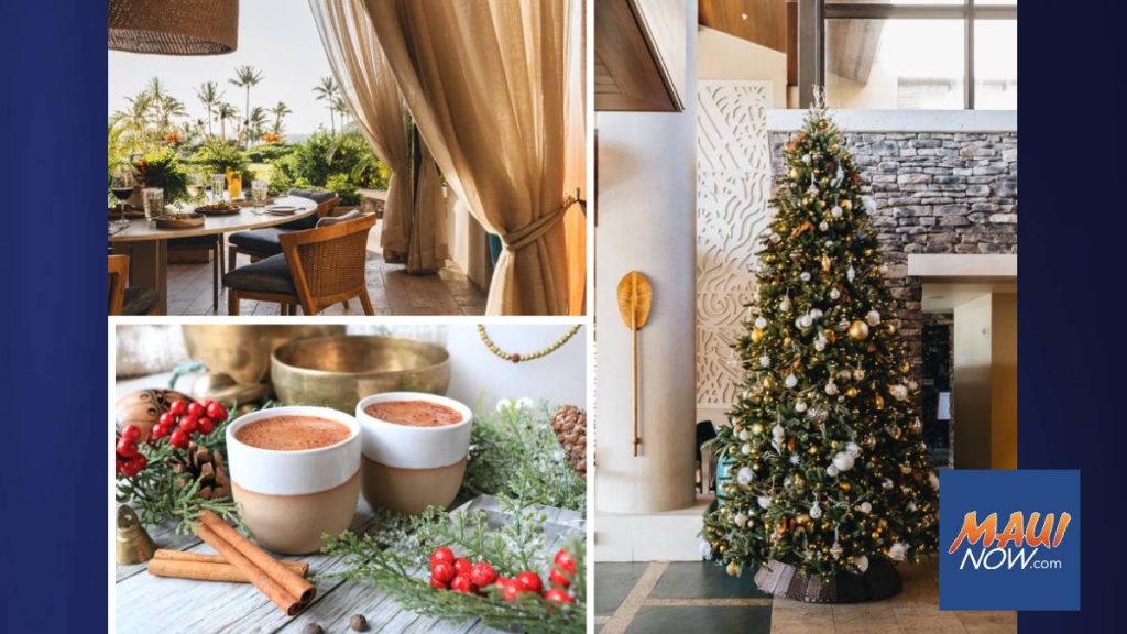 Guests can savor a three-course meal set against the backdrop of Kapalua Bay. The menu blends traditional holiday flavors with island-inspired dishes like Kona kampachi, roasted turkey, grilled ribeye and pumpkin pie.