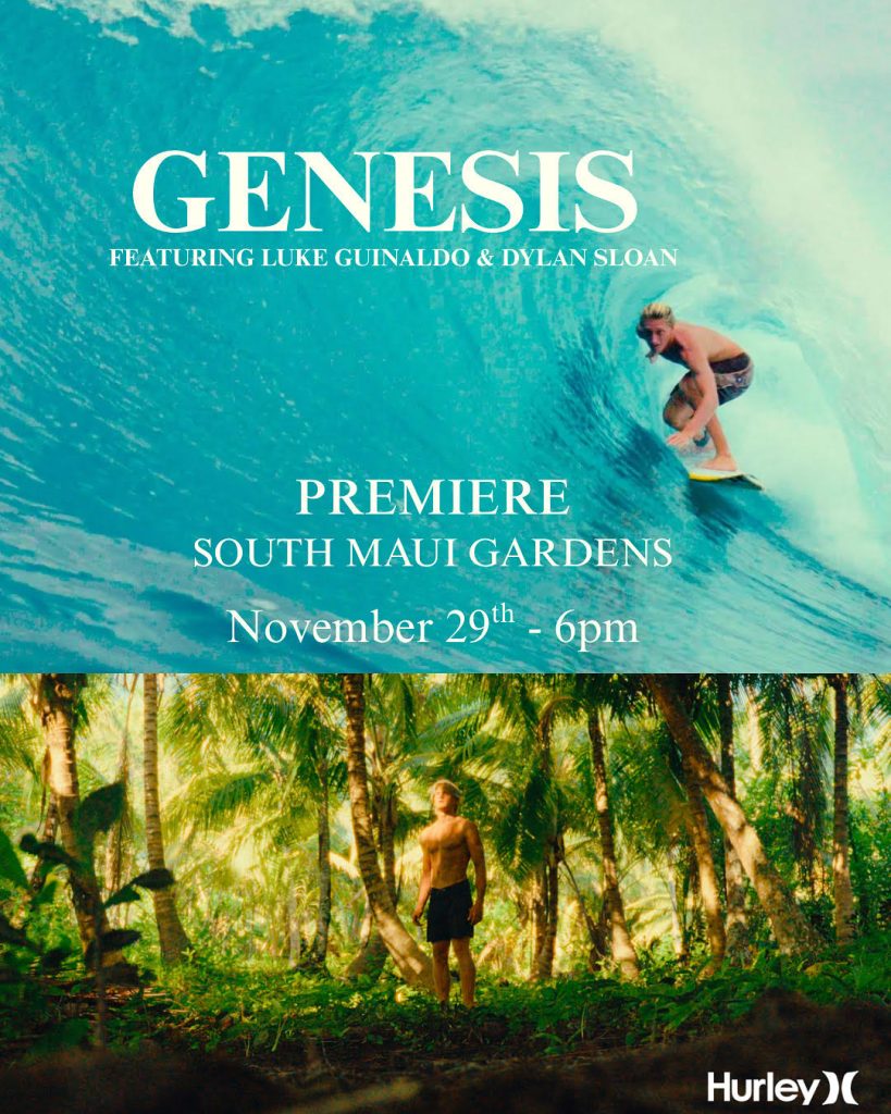 Maui-born 17-year-old surfer Dylan Sloan is bringing his new Hurley-sponsored surf film “Genesis” home for a special one-night premiere on Saturday, Nov. 29, at 6 p.m. at South Maui Gardens in Kīhei.