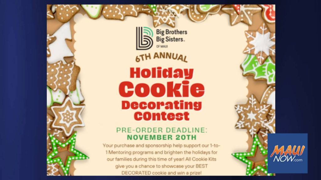 Big Brothers Big Sisters of Maui has begun its annual Cookie Decorating Contest. The fundraiser supports its one-to-one mentorship programs for Maui youth. Participants of all ages can enter.