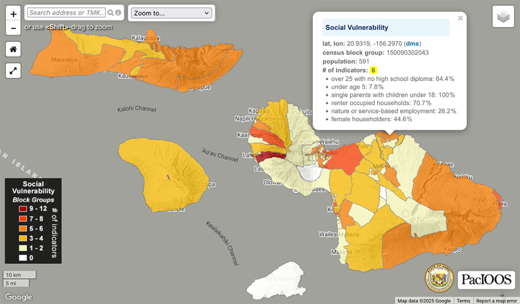 The viewer was developed through partnership between the Pacific Islands Ocean Observing System, the Coastal Research Collaborative at the University of Hawaiʻi and the University of Hawaiʻi Sea Grant College Program, along with CCMAC, DLNR and the Hawaiʻi Office of Planning and Sustainable Development. Improvements include expanded data, user-friendly guidance and social vulnerability indicators.