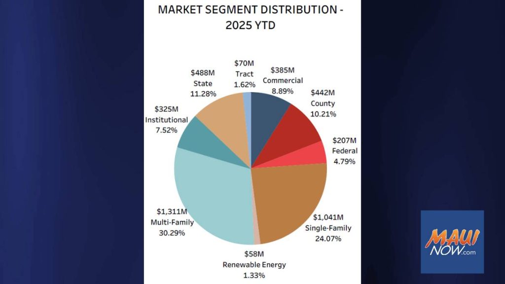 Across Hawai‘i, construction spending has reached $4.33 billion year-to-date, a sign the sector remains strong in 2025 despite broader economic uncertainty, according to PRP.