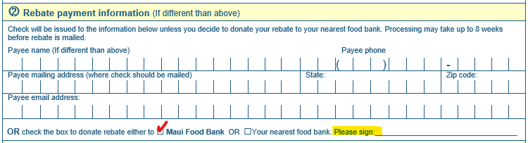 Residents who choose to donate can do so directly on the program application. To donate, check the appropriate box in “Section 2 – Rebate Payment Information” on the rebate application then sign next to it.