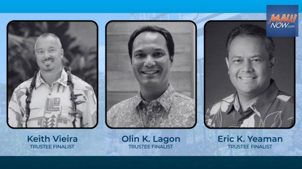 The event will bring together Kamehameha Schools beneficiaries, alumni, families, and community stakeholders for an evening of conversation with the three KS Trustee finalists: Keith Vieira, Olin K. Lagon, and Eric K. Yeaman.