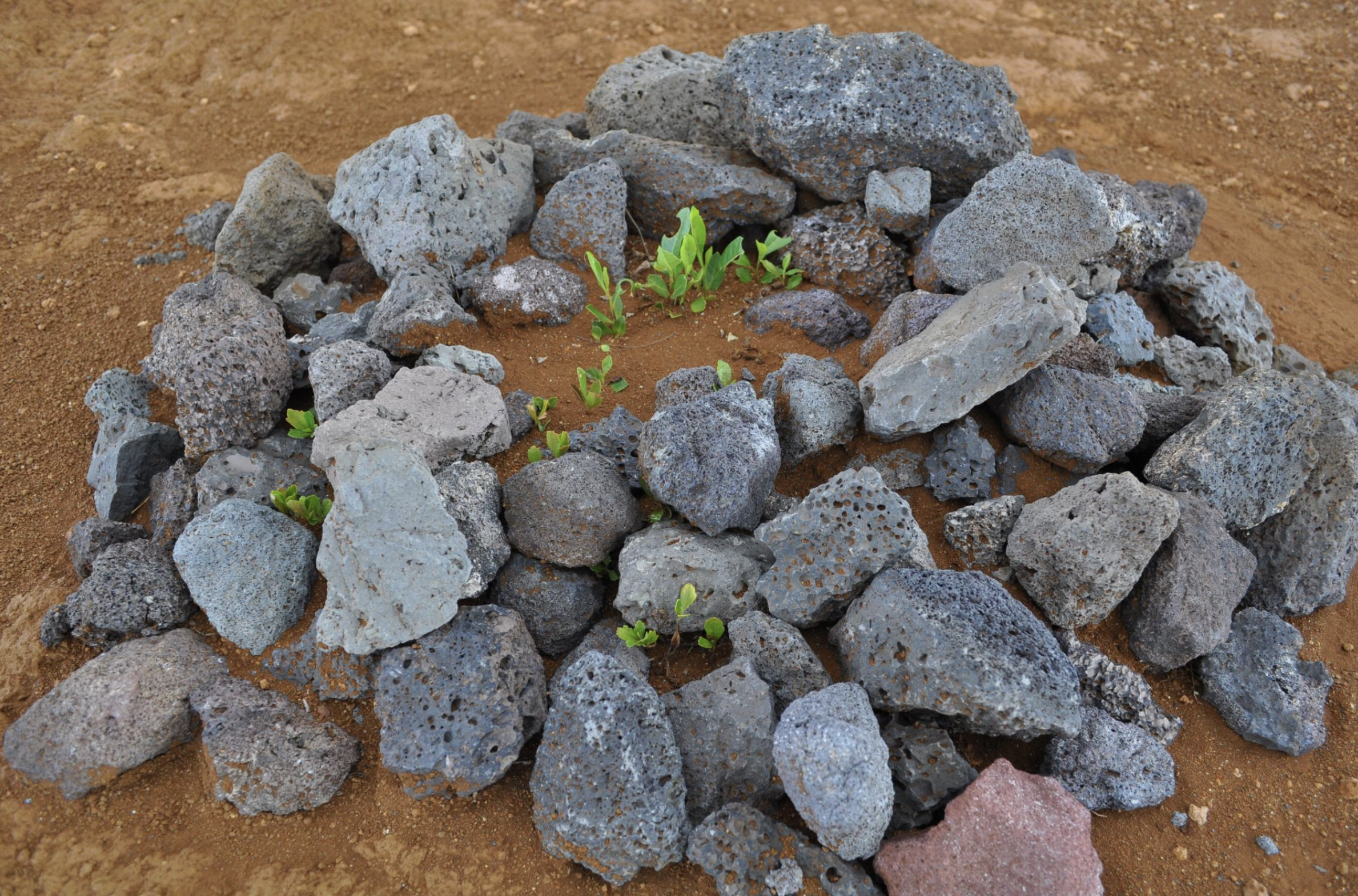 Paul Higashino, a natural resources specialist with the commission, said the island’s hard-pan landscape that feels as solid as asphalt and the unexploded ordnances make it difficult to dig deep. In some places they’ve resorted to ancient techniques: piling up rocks, tossing in a few seeds, occasionally watering and letting nature run its course.