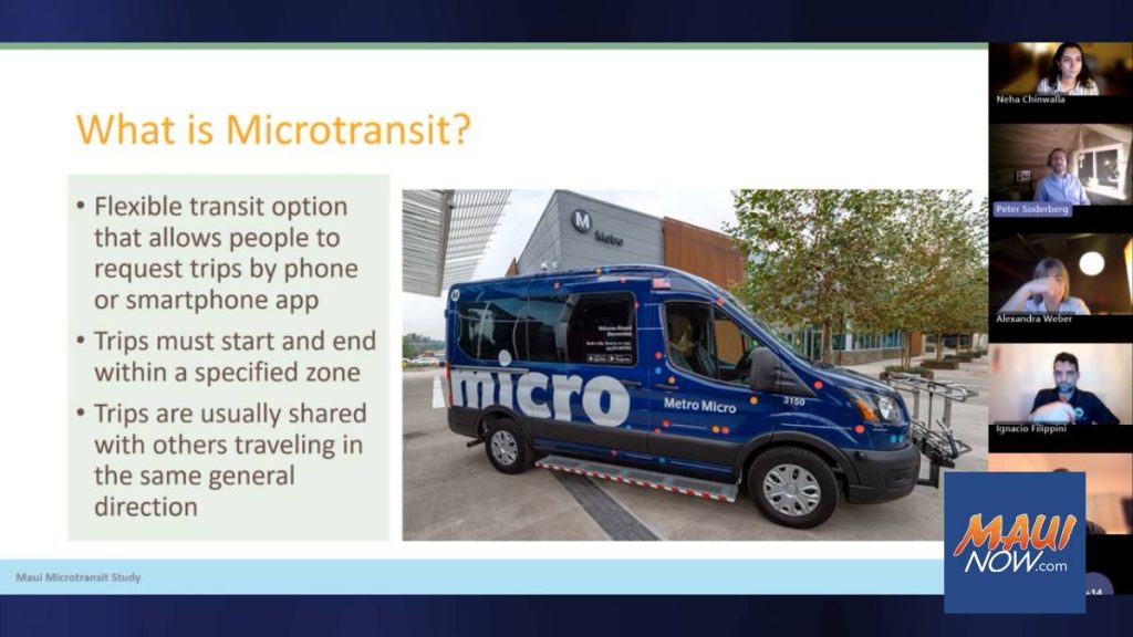 Initially recommended in a 2022 Maui Bus System study, microtransit is being studied further by County contractor Nelson Nygaard.