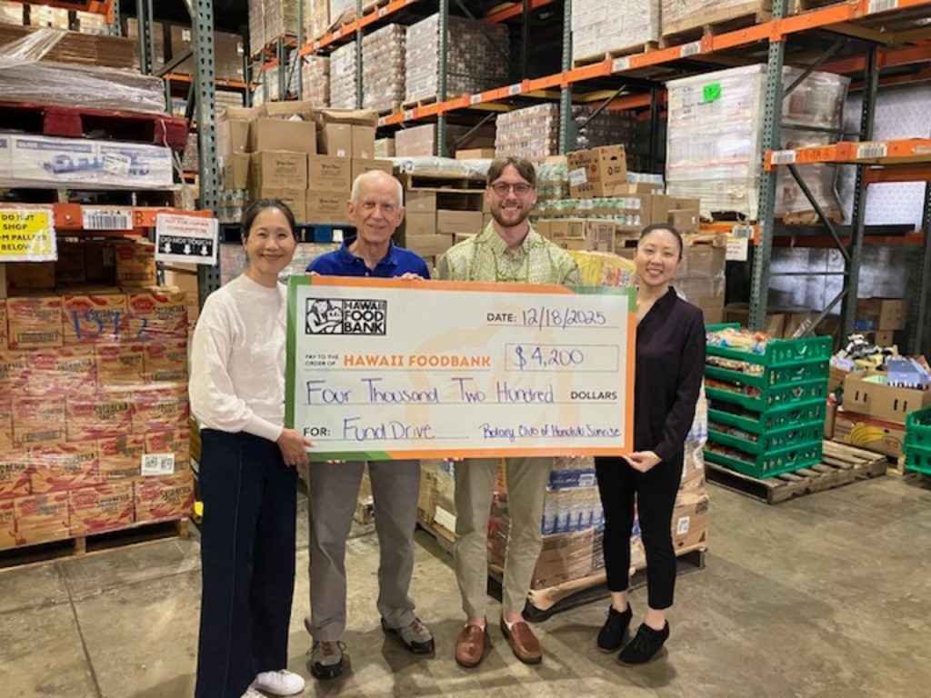 Members of the Rotary Club of Honolulu Sunrise donated $4,200 to the Hawaiʻi Food Bank in December following a successful fundraising campaign. The contribution will help support food distribution and hunger-relief programs serving individuals and families across Hawaiʻi.
