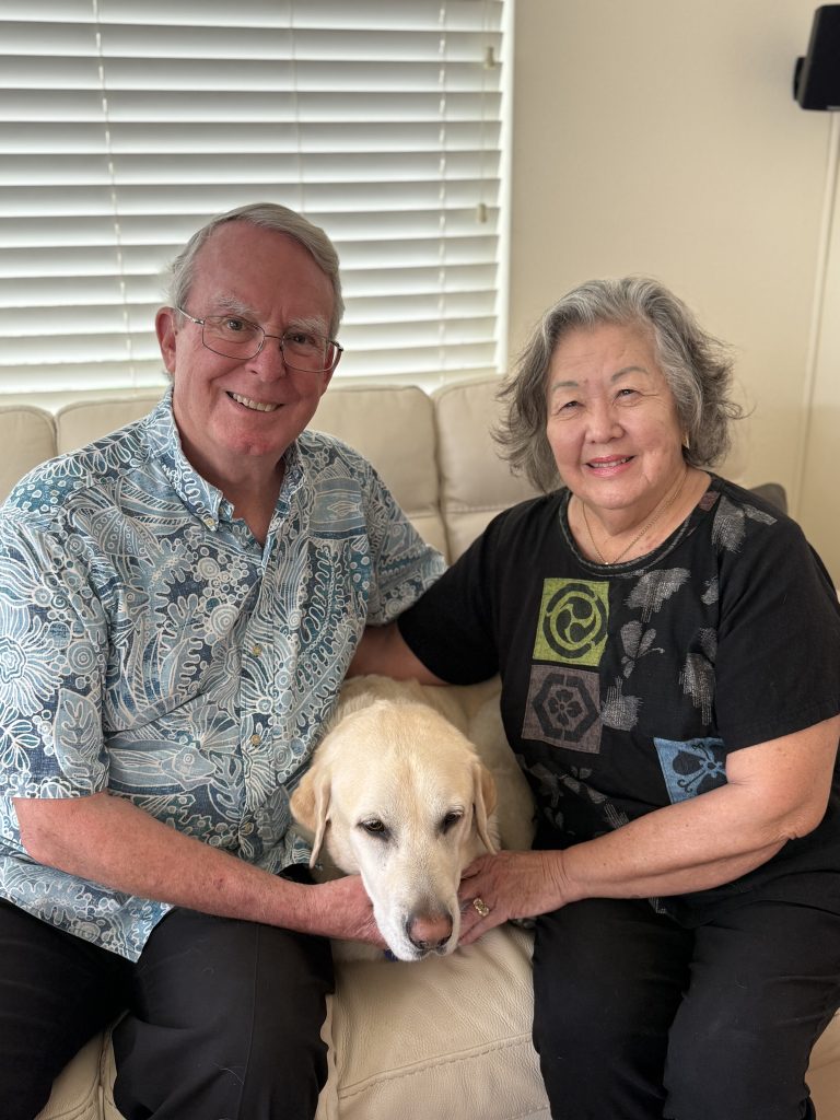 Their compassion is hands-on. With Vickie’s retired guide dogs, they have provided thousands of pet-therapy visits at Queen’s Medical Center and St. Francis Hospice. Recently, they were both elected to the Board of Directors of Damien Memorial School.