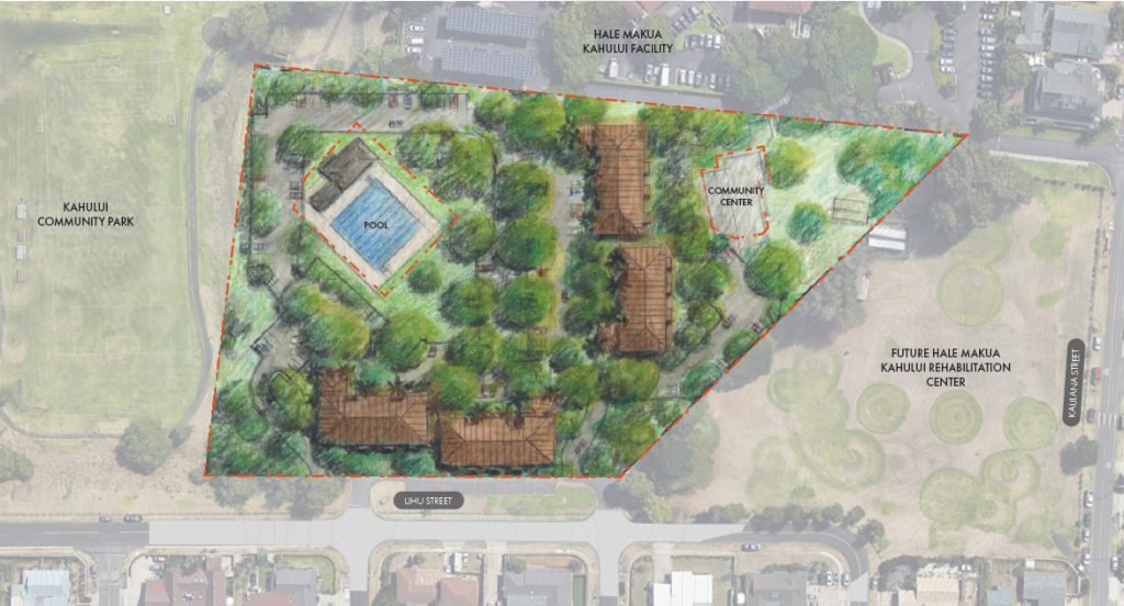 Workforce Housing Site Plan Rendering within Kahului Community Center Park. Photo Credit: Hale Makua/Alakaʻi Development
