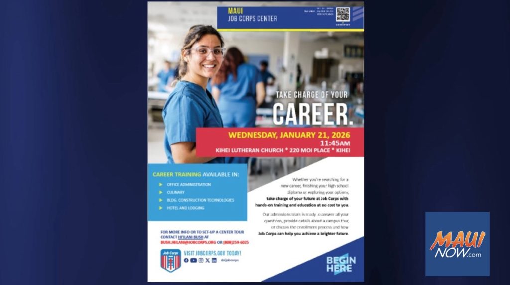 The Maui Job Corps Center offers programs that provide vocational, academic and employability skills to students ages 16 to 24 at no cost. The program also provides free housing, meals and transportation services based on income eligibility.