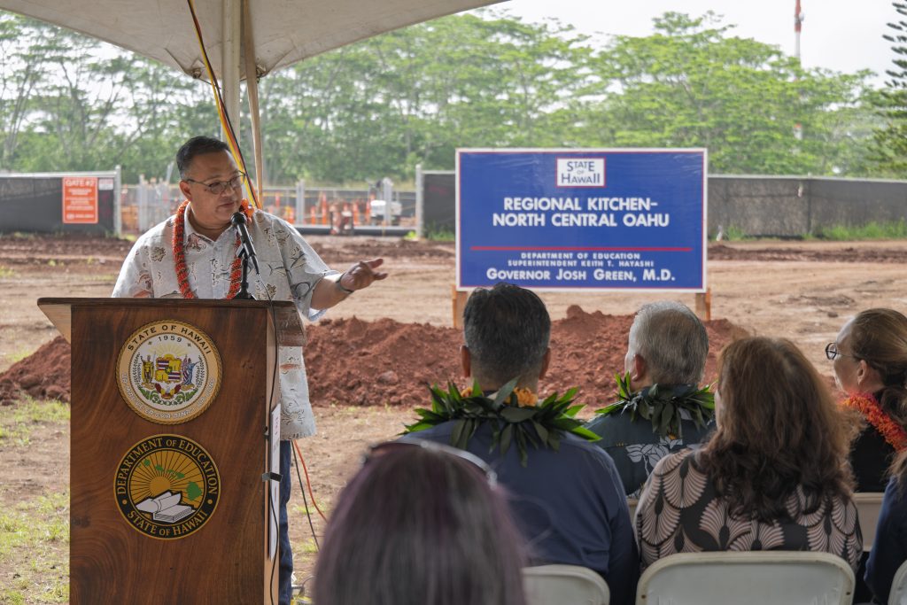 “This groundbreaking is more than a kitchen — it’s about building a healthier, more resilient Hawaiʻi,” First Lady Jaime Kanani Green said. “Our keiki’s meals are a public health investment — what children eat today will shape their health for decades to come. This facility strengthens the connection between our schools and local farmers, it keeps food dollars in Hawaiʻi, supports our agricultural community, and helps build a food system that can better withstand disruption.”