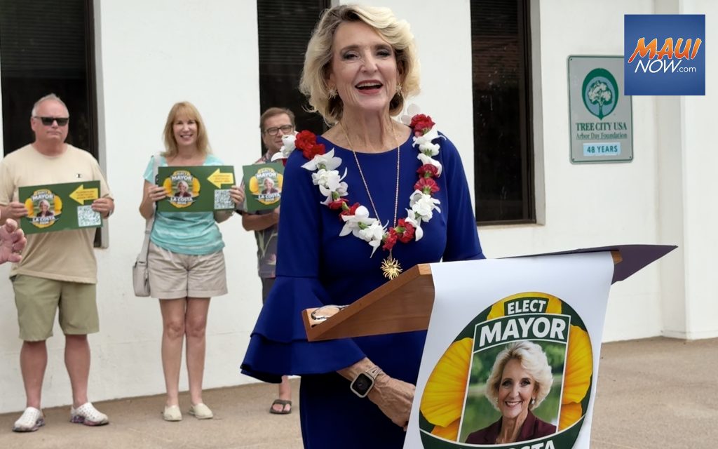 P. Denise La Costa, a Maui community leader and business owner, announced that she is running for Maui County Mayor. The news was shared during a press conference Thursday, fronting the County Building in Wailuku.