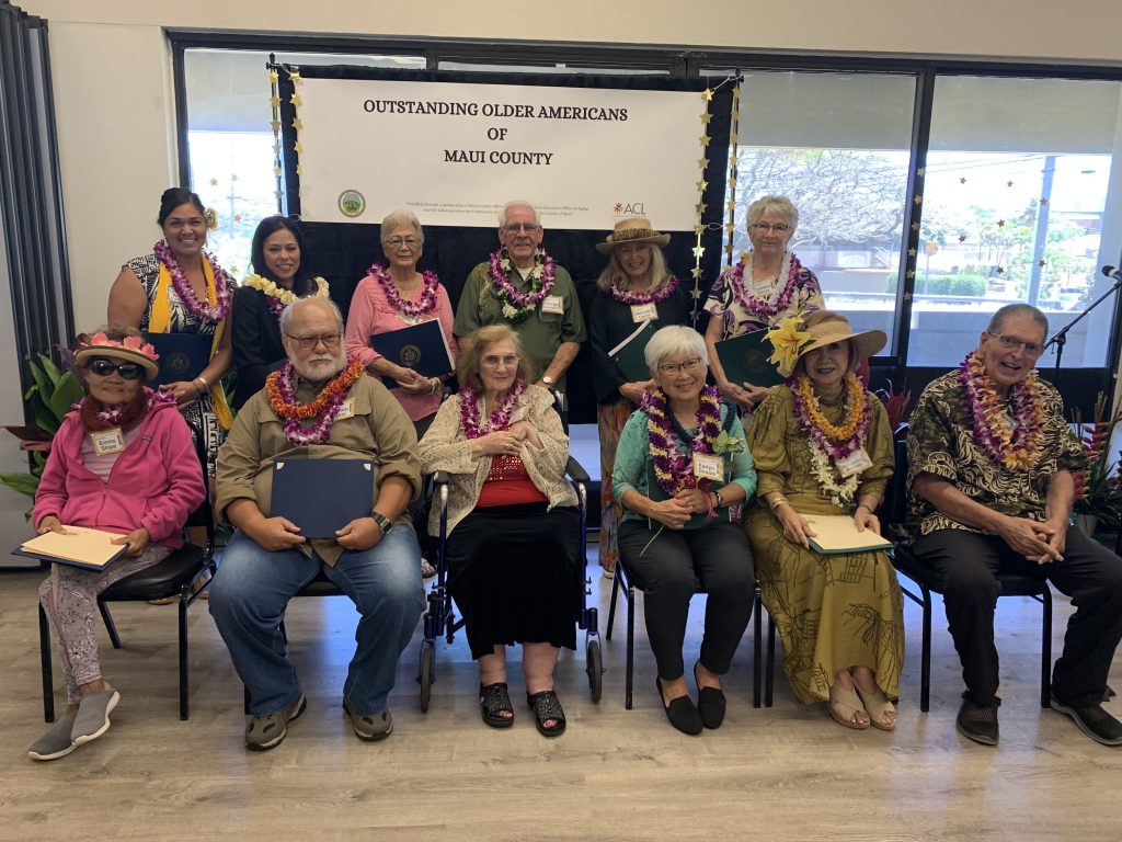 Wendell Crockett was the first individual in Maui County to receive the distinction of Outstanding Older American in 1968. Last year, the County Office on Aging presented the awards to Patricia Niibu of Lāna’i City and Bishop Pahia of Waiehu. To date, more than 100 men and women have received the award for their outstanding contributions to Maui County.