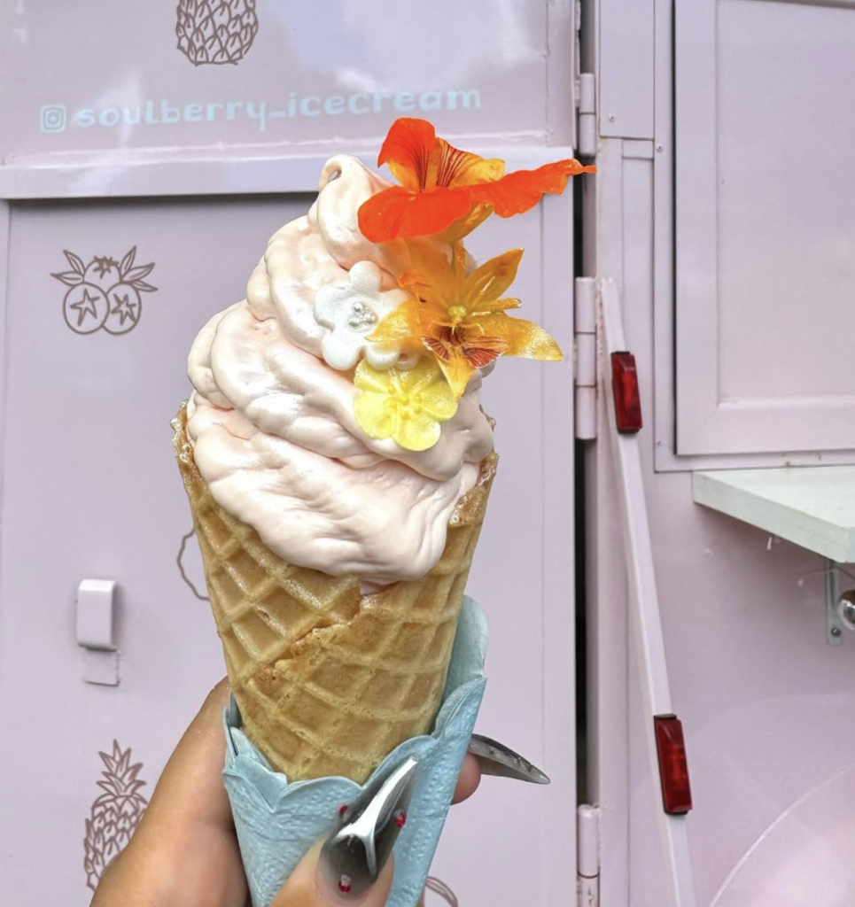 Soulberry combines premium vanilla ice cream from Roselani Ice Cream or dairy-free coconut from Coconut Glen’s with fresh fruits such as pineapple, lilikoʻi, dragon fruit and strawberry. Soulberry’s signature swirl is inspired by a New Zealand-style real fruit ice cream method, where fruit is blended into soft-serve, creating a smooth texture without additives or preservatives.