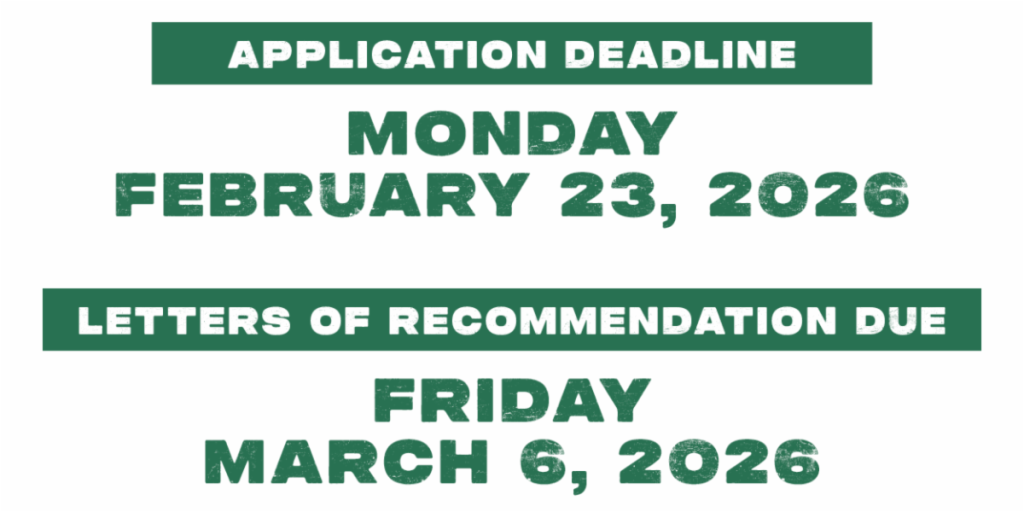 Students will be notified of their selection by Tuesday, March 31, 2026