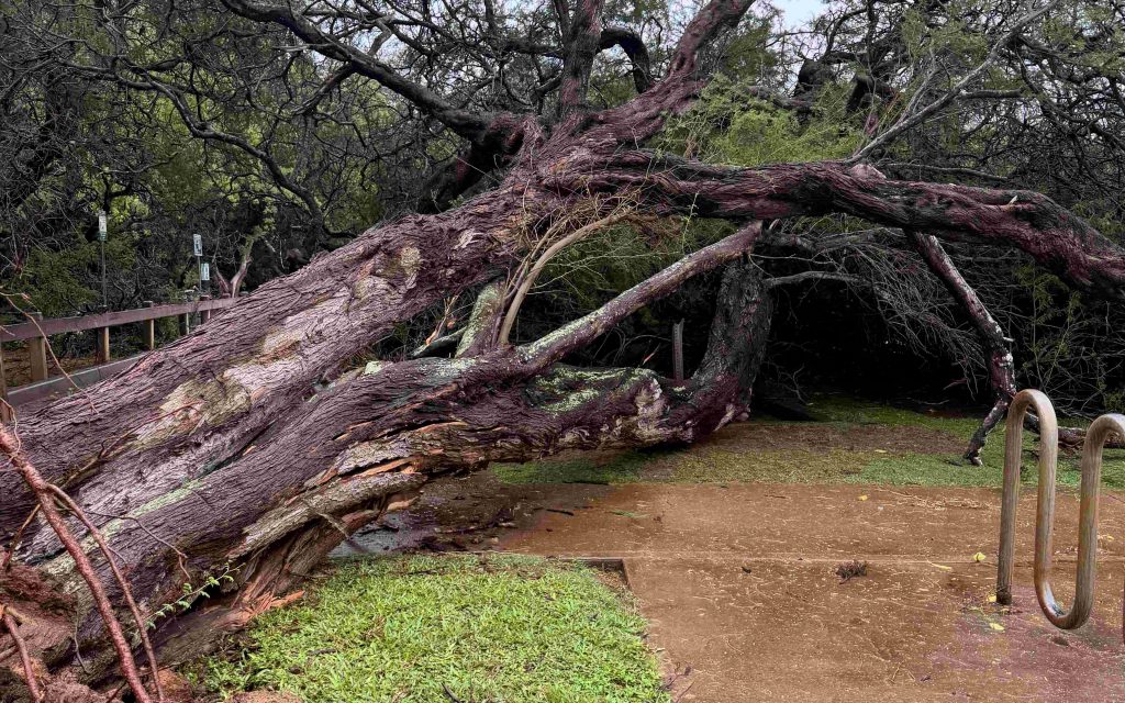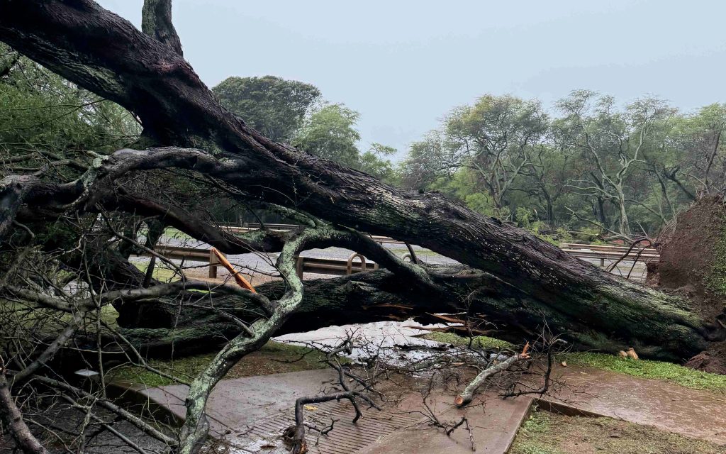 Flooding and downed trees today closed Waiehu Municipal Golf Course and Kanaha Beach Park third entrance, according to the Department of Parks and Recreation. No other County facility and park closures have been reported.