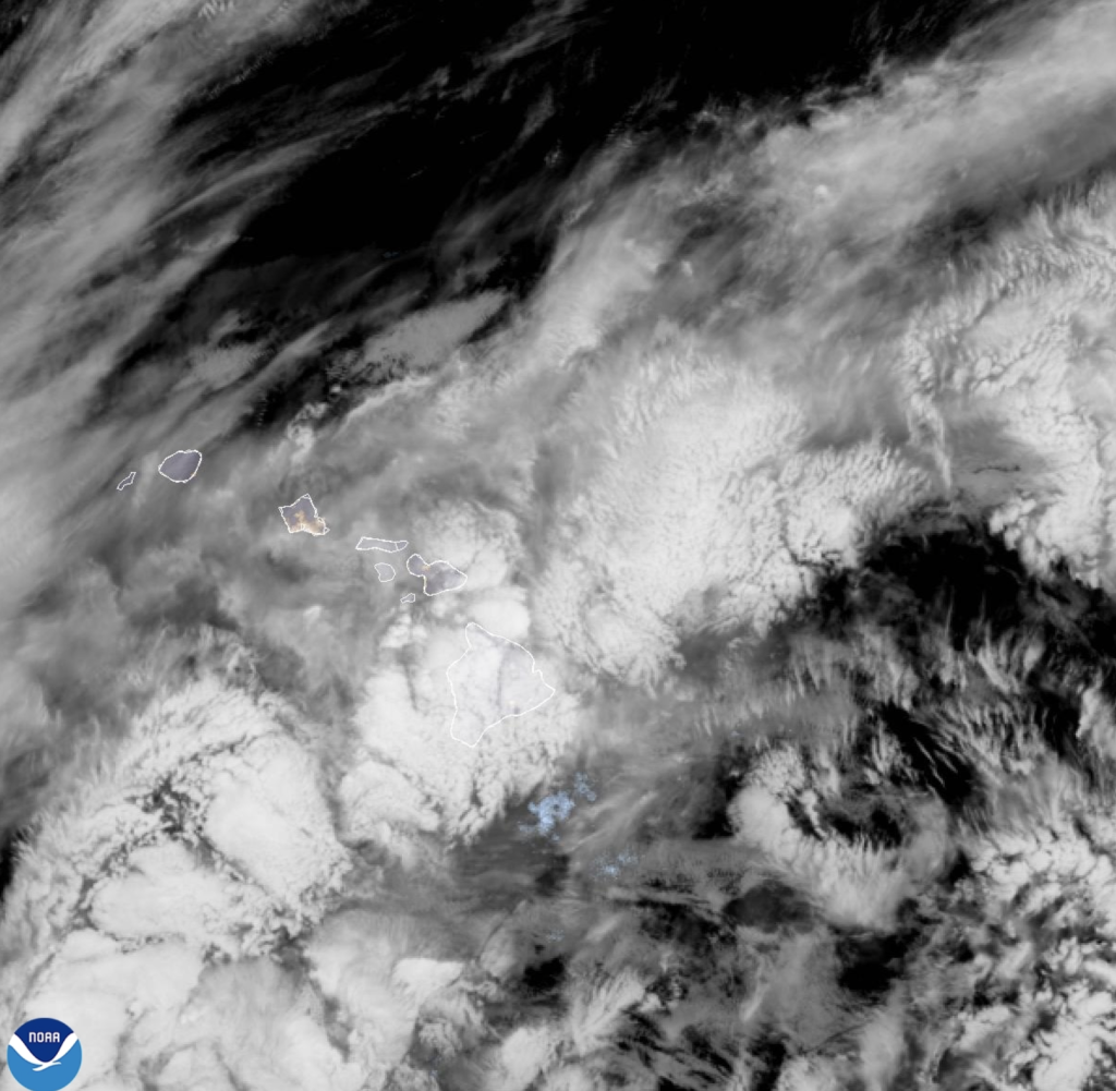 “This upper low will weaken and slowly drift farther to the southwest and away from the state through Wednesday. A surface high to the north will strengthen overnight, helping keep strong trade winds blowing through tomorrow, with only a little bit of weakening going into Tuesday,” according to the NWS.