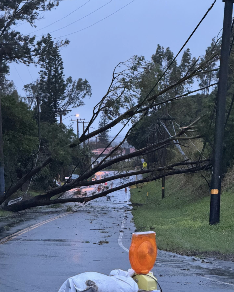 Mayor Richard Bissen signed an emergency proclamation Saturday ahead of the severe weather, which gives the County the legal authority to mobilize resources, activate emergency plans and streamline processes to respond quickly and effectively. County of Maui’s Emergency Operations Center went into full activation as of 10 p.m. Sunday. MPD has increased staffing during storm event. Department of Public Works crews have been cleaning drains and culverts throughout the county, along with clearing roadways. The Department of Water Supply and Department of Environmental Management topped off fuel tanks and preparing generators.