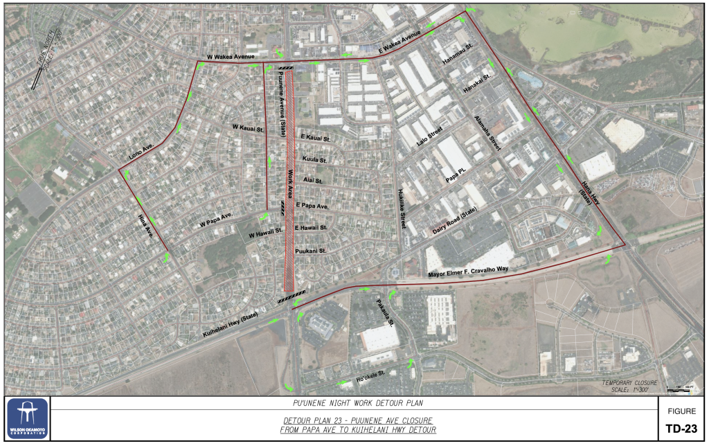 Construction barriers will be established at the right turn onto Puʻunēnē Avenue from Mayor Elmer F. Cravalho Way, as well as at the left-turn lane heading onto Puʻunēnē Avenue from Kūihelani Highway, to enable the work to proceed safely. Additionally, there will be no right turns from West Papa Avenue onto Puʻunēnē Avenue; and no left turns from East Papa Avenue onto Puʻunēnē Avenue. Those needing access to Puʻukani Street may use Hukilike Street.