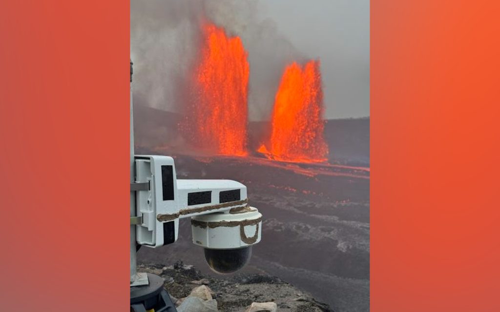 One livestream camera (V3cam) was destroyed by the episode 38 lava fountain from the south vent on Dec. 6, 2025. A broad arcing fountain extended over 600 yards (meters) and buried the camera under 10 meters (yards) of tephra. HVO staff were able to deploy a new V3cam in a safer spot relatively quickly because we maintain a cache of monitoring equipment that can be deployed rapidly for eruption response.