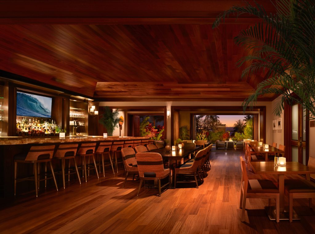 Menu highlights include signature cocktails crafted with local spirits and seasonal ingredients, and shared plates that allow guests to linger longer. A dedicated Mai Tai menu rounds out the experience, which includes the epic Ultimate Mai Tai, a blend of brum solera rum, ferrand dry curaçao, and sugar cane dane macadamia nut orgeat, featuring spirits from Ocean Organic Farm & Distillery, Maui’s only farm-to-bottle distillery growing its own sugar cane on-island, and a custom keepsake tiki glass hand-blown by renowned glass artist Ryan Staub of Moana Glass.