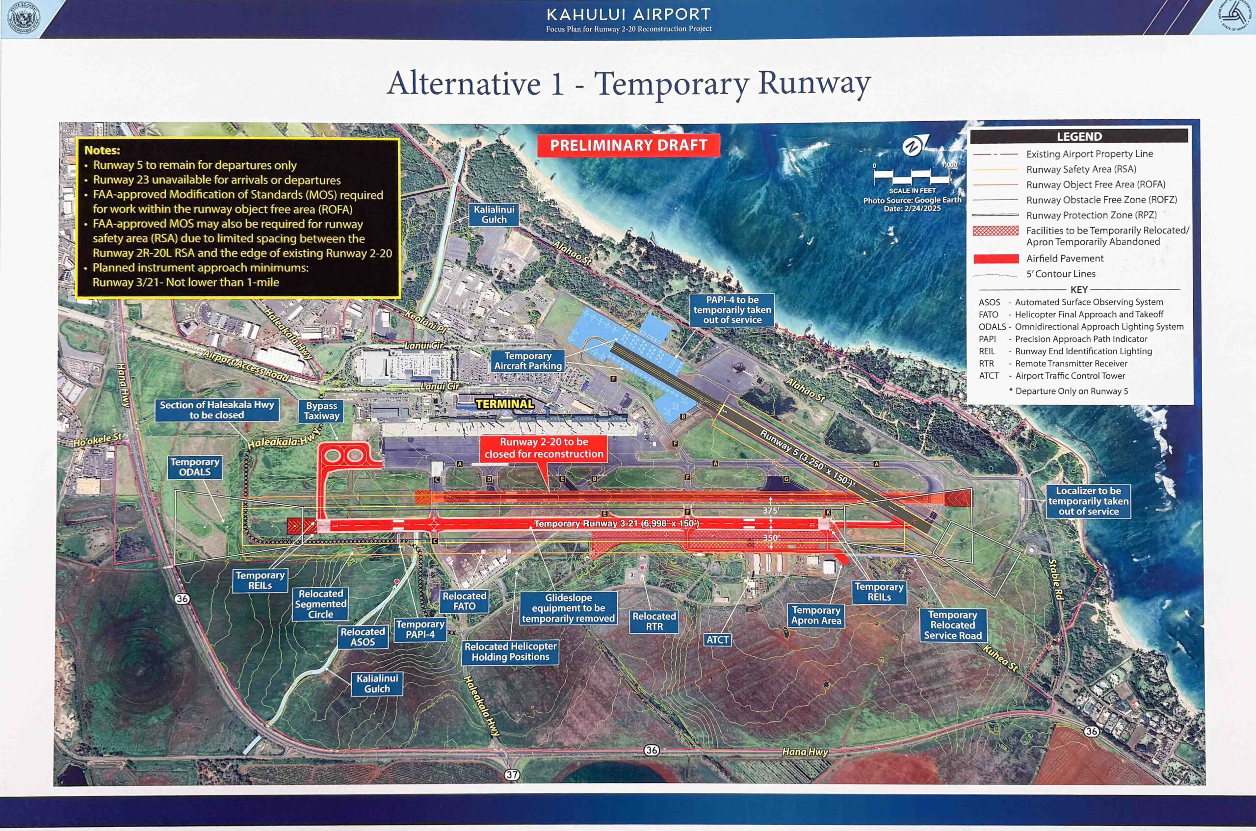 Now, the only sound solution at Hawaiʻi’s second busiest airport is reconstructing Runway 2-20, Otaguro told about 50 people at a public meeting on Monday night at Maui High School.