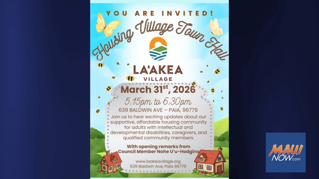 Laʻakea Village will host a community town hall meeting March 31 to share progress on a planned 22-unit affordable housing development in Pāʻia designed for adults with disabilities and support staff.