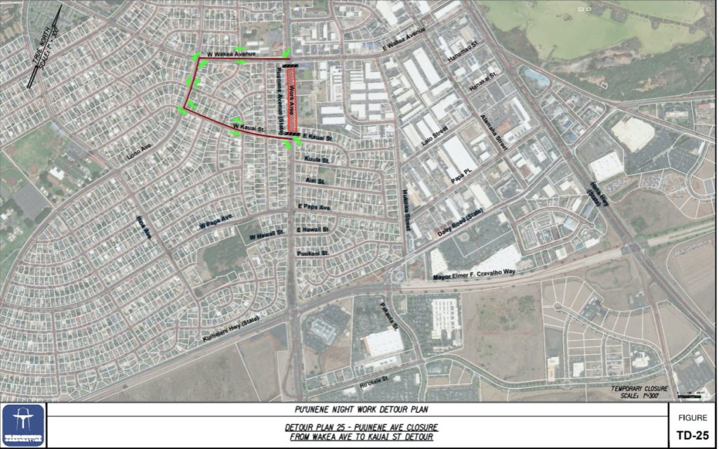 Department officials said motorists can bypass the work zone by turning west on West Wākea Avenue, heading south on Lono Avenue, and returning to Puʻunēnē via West Kauaʻi Street.