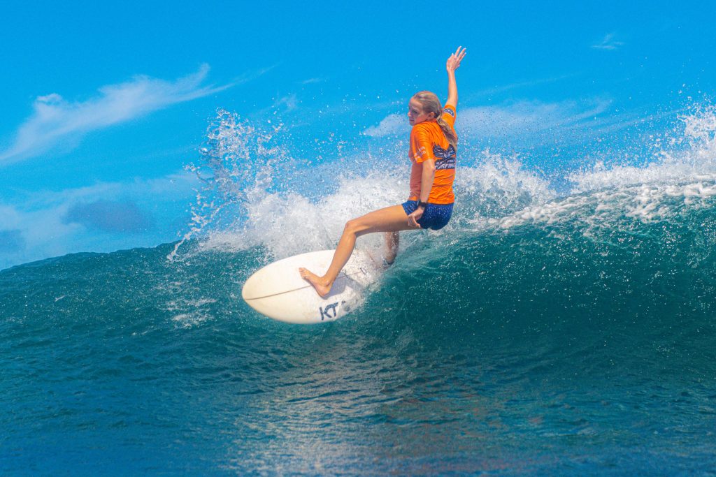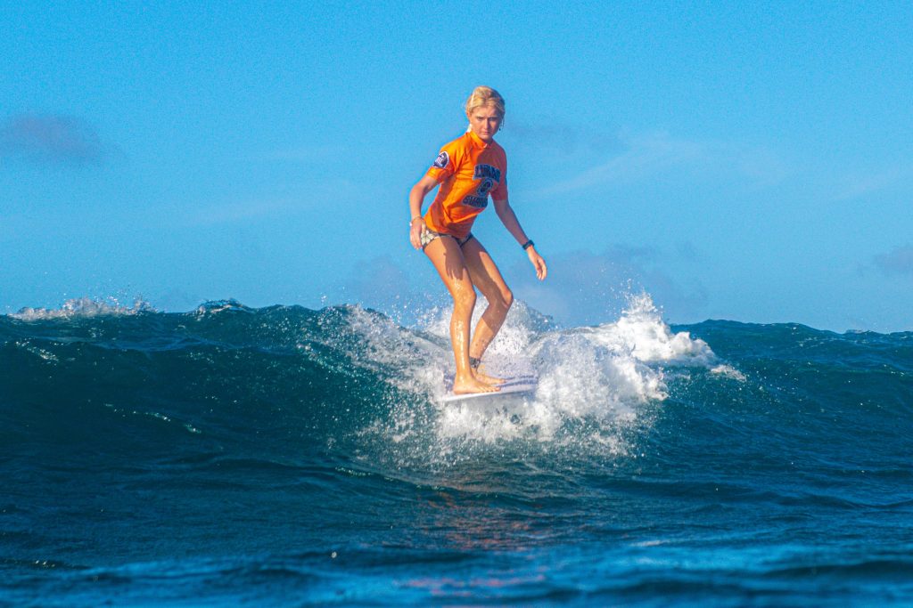 Other Nā Aliʻi finalists included: Ayla Daian (first in shortboard No. 1 and second in longboard No. 1), and Kaya Przeciechowska (second in shortboard No. 3 and second in longboard No. 2).
