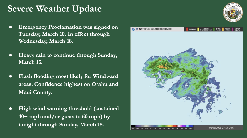 Gov. Josh Green announces closures ahead of storm impacts. PC: (3.12.26) Office of the Governor