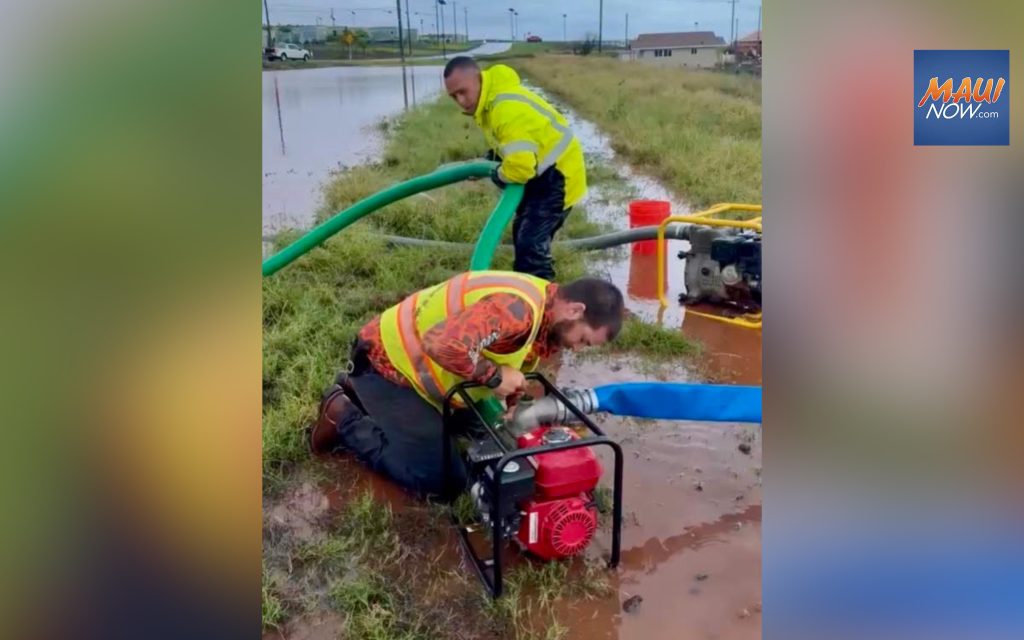 Overnight pumping by County of Maui crews has been successful in keeping the retention basins at safe levels. Crews have been working to redirect overflow and actively pumping water from the basin to help keep levels safe.
