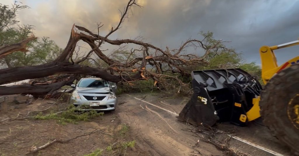 (8 a.m., March 15, 2026) Crews from the state Department of Transportation continue to clear trees and debris from North Kīhei Road. North Kīhei Road remains closed between Honoapiʻilani Highway and Piʻilani Highway.