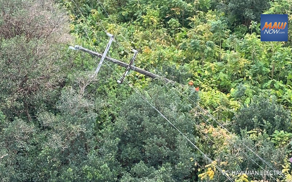 - Hawaiʻi Island: Last night, power was restored to about 2,900 customers in Volcano Village, Kalapana, Na‘alehu, and Kaloko Mauka. About 10,800 customers (12% of customers on the island) currently are without power, mostly in Puna and North Kona. Today, crews will be working in Kea‘au, Kurtistown, Mountain View, Volcano, South Point, and North and South Kona. Damage assessment teams will be working in lower Puna. Yesterday, 30 damaged or broken poles were identified and three transmission lines were repaired.