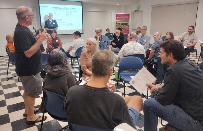 Playful interaction put the focus on ‘ohana’ at the March 13 Maui Tech ‘Ohana, presented by Maui Economic Development Board. The evening’s guest speaker, Doug Nelson, used structured games and playful activities to help participants connect and share in ways that feel natural, energizing, and meaningful.