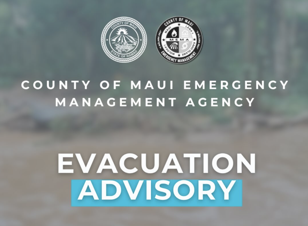 MEMA evacuation Advisory for Lahaina areas due to vehicle access issues from sinkholes