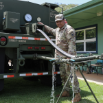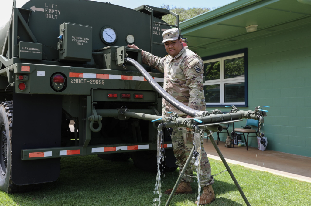 Since Monday, the HING has been providing 400- and 800-gallon water tank trailers as requested by the Department of Education at four schools (Waialua High School, Waialua Elementary, Sunset Elementary and Haleʻiwa Elementary) throughout the North Shore, to provide safe drinking water for students and the community. The HING also provided water to the Otake Camp community members to assist with cleaning efforts of that area. The water is provided by the Army, Schofield Barracks.