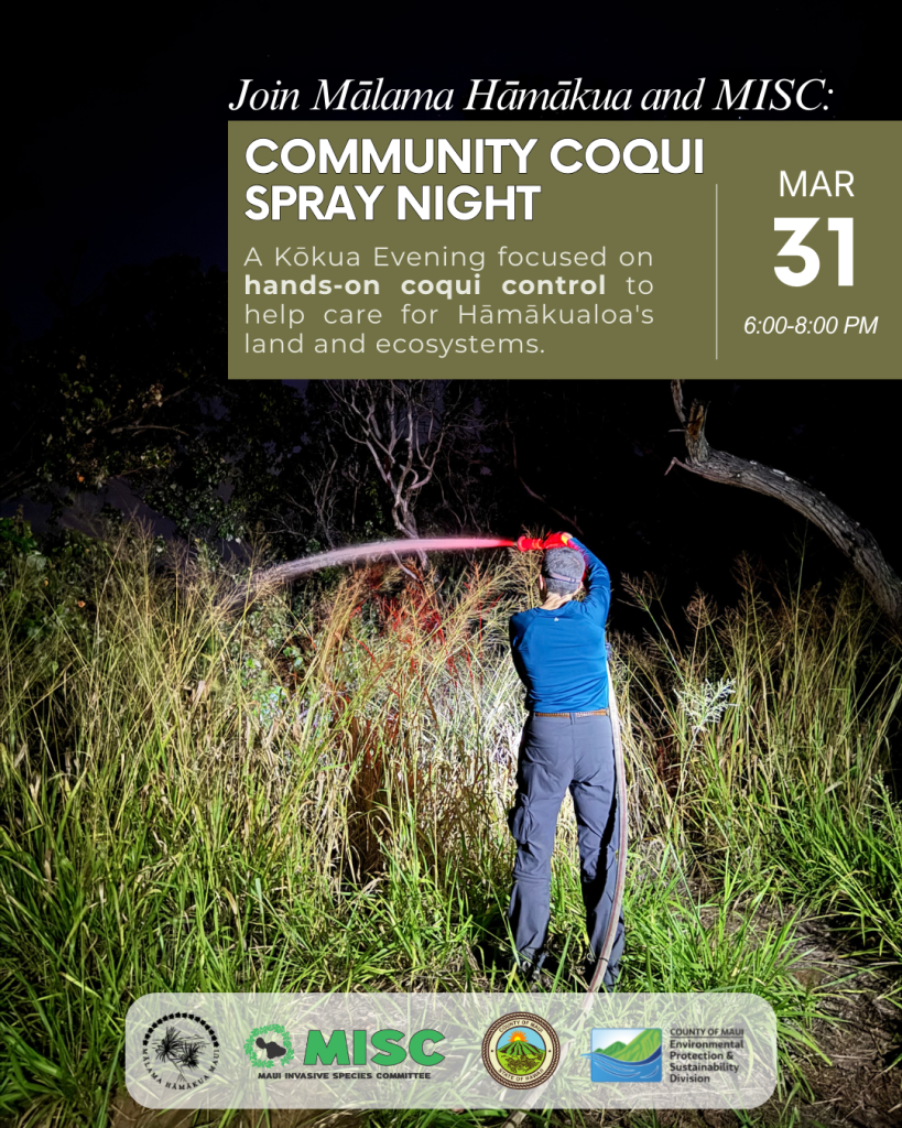 Mālama Hāmākua Maui and Maui Invasive Species Committee launch 2026 evening coqui control workdays