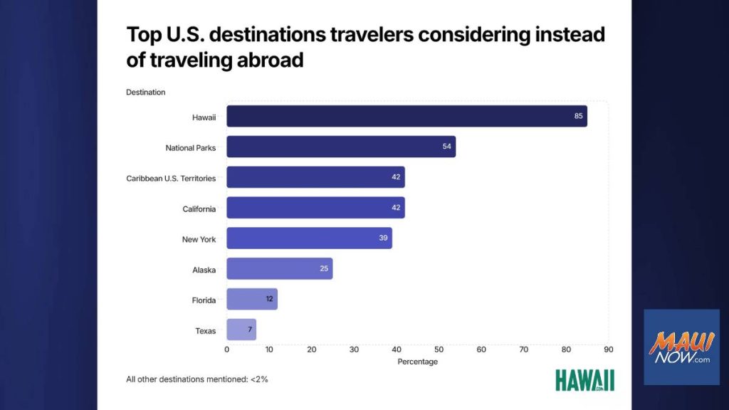 Recent global events led two-thirds of American travelers to reconsider international trips, with 85% identifying Hawaiʻi as their top domestic alternative, according to a survey released by Hawaii.com.